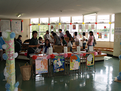 PTAブースである会議室を間借りして、会報の展示、ホームページの紹介、PRカードの配付等の内容でした。